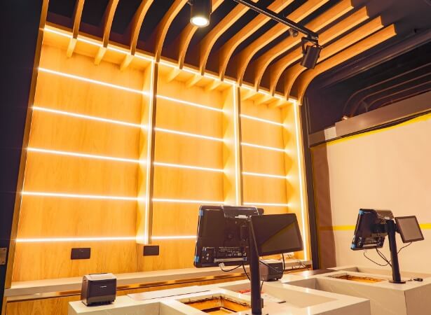A variety of joinery products were required for the fit-out, but the awkward space distribution and floor plan required precise measurements, drawings, and manufacturing, never a problem with Yasmeen Joinery.